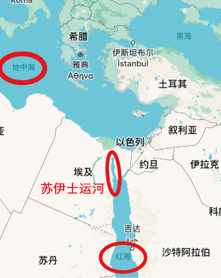 红海通过苏伊士运河连接地中海,目前大约有12%的全球贸易依赖红海航线,战略位置十分重要。