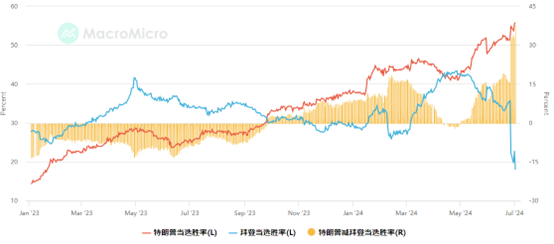 因此,笔者大胆假设,若拜登真的退选,行情可能加速上涨,因为特朗普大概率将当选,市场对于11月总统选举的不确定感消失。