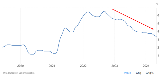 综观6月份所公布的相关通胀数据,不仅是刚刚提到的PCE,CPI以及PPI也都呈现继续下行的情况,例如核心CPI年增率来到逾3年新低至3.4%,也重燃市场预期9月份美联储降息的希望(9月降息一码以上的概率从5成来到7成)。