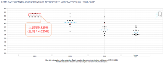 利率如市场预期维持不变,而季度经济展望维持经济成长预测不变、上调核心通胀与利率预期、预期就业市场保持稳定,而市场关注的点阵图则将原先年内降息3码改为降息1码。