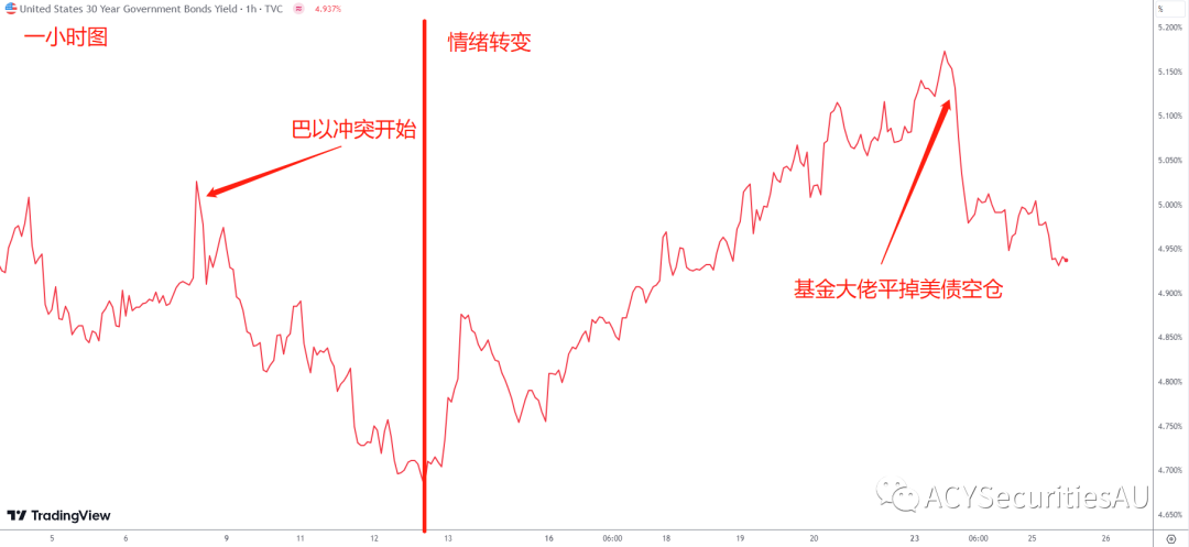 从美国长债利率的表现来看,虽然巴以冲突刚开始,不少人购入美债避险,但不到一周,行情便发生逆转。原因其实很简单,这种程度的地缘冲突,和疫情或金融危机不同,非但不会增加美债需求,反而会提高美债供给。因为美国在这些冲突中,包括俄乌和巴以,扮演的是军备与物资援助方。本周拜登更是寻求新的1亿美元支出法案,同时向以色列与乌克兰提供援助,这些援助都是要美国政府花钱的。