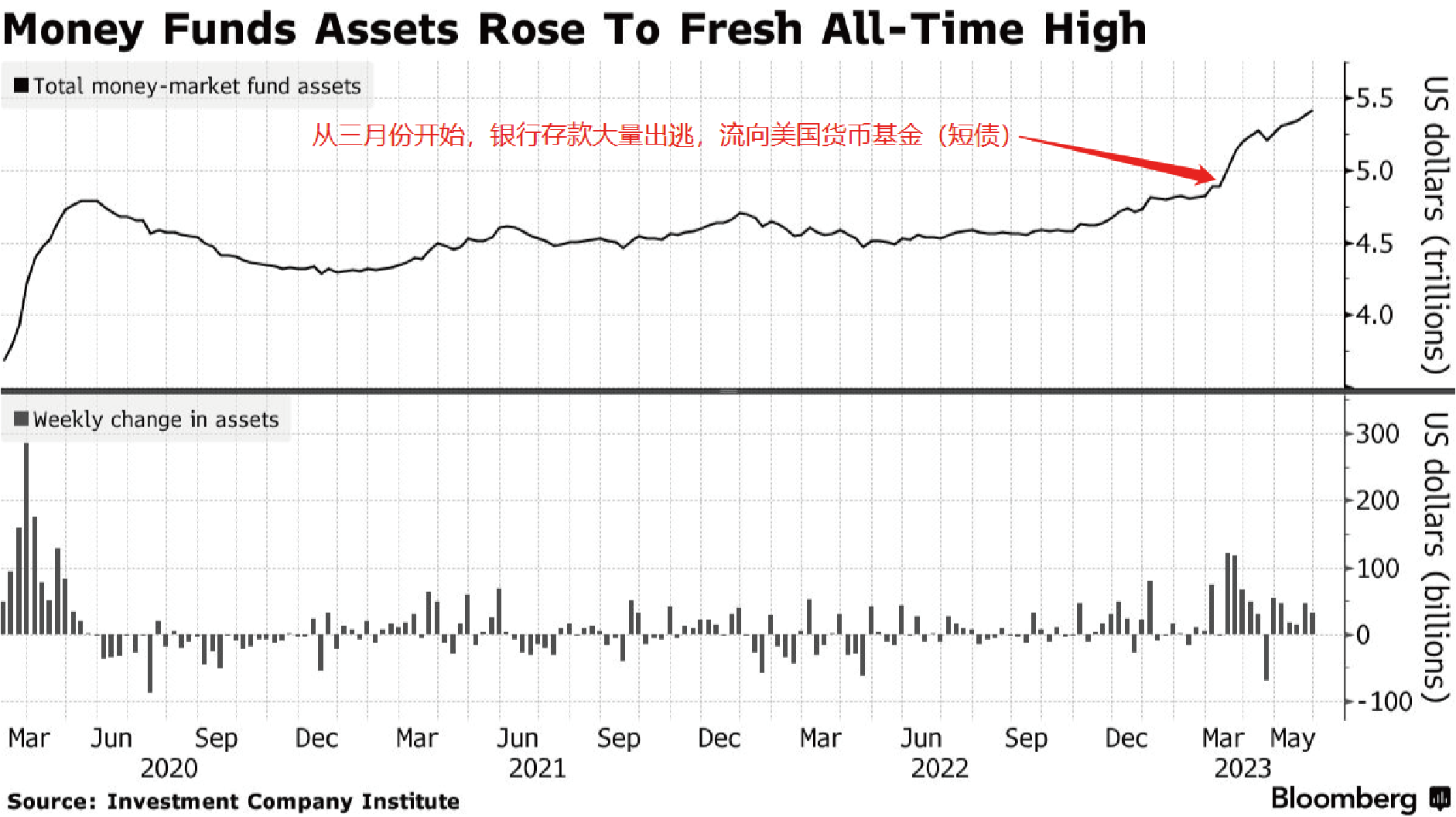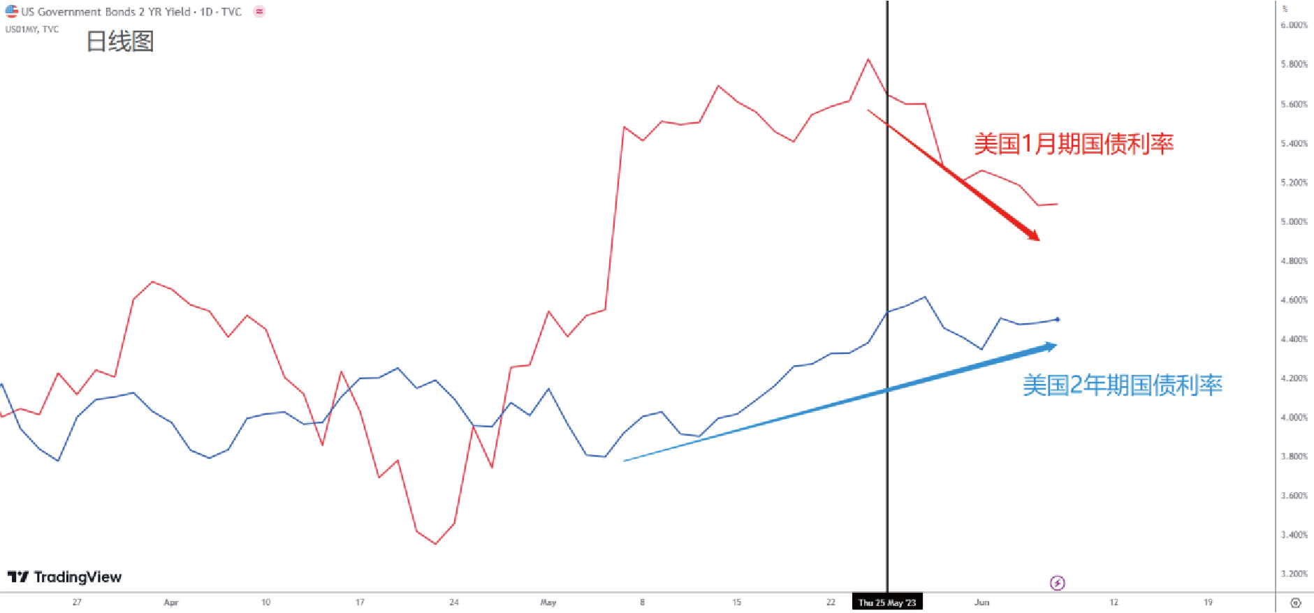 那么短债利率的波动就不值得关注了吗?自然不是。在拜登签署法案之后,美国财政部又能借新债还旧债了。据华尔街投行预测,到今年三季度末,美国财政部的举债规模将超过1万亿美元。既然短债供给增加,理应抬高利率,为何短债的利率却在持续下跌?那是因为在债务违约风险解除后,投资者再度涌入了年利率超过5%的短债市场当中。对比当前标普指数5%的回报预期,市场青睐短债并不难理解。