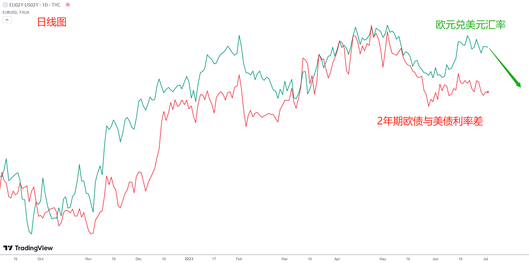 EURUSD与欧美国债利差