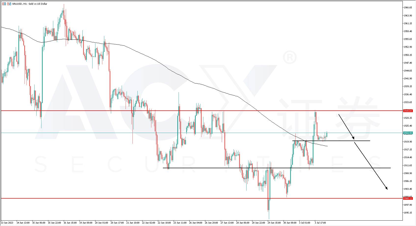 XAUUSD一小时图
