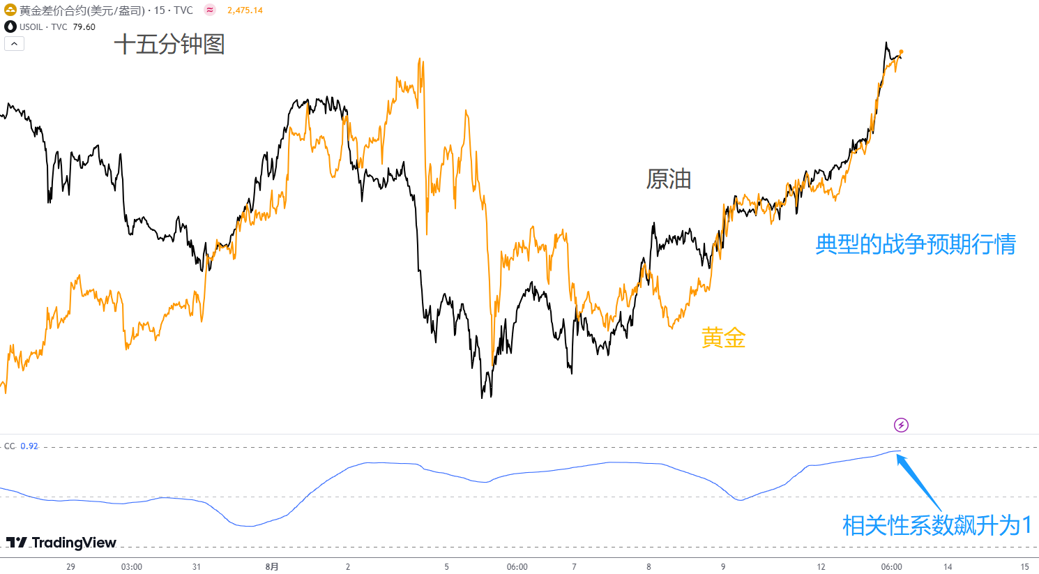 XAUUSD vs USWTI 十五分钟图