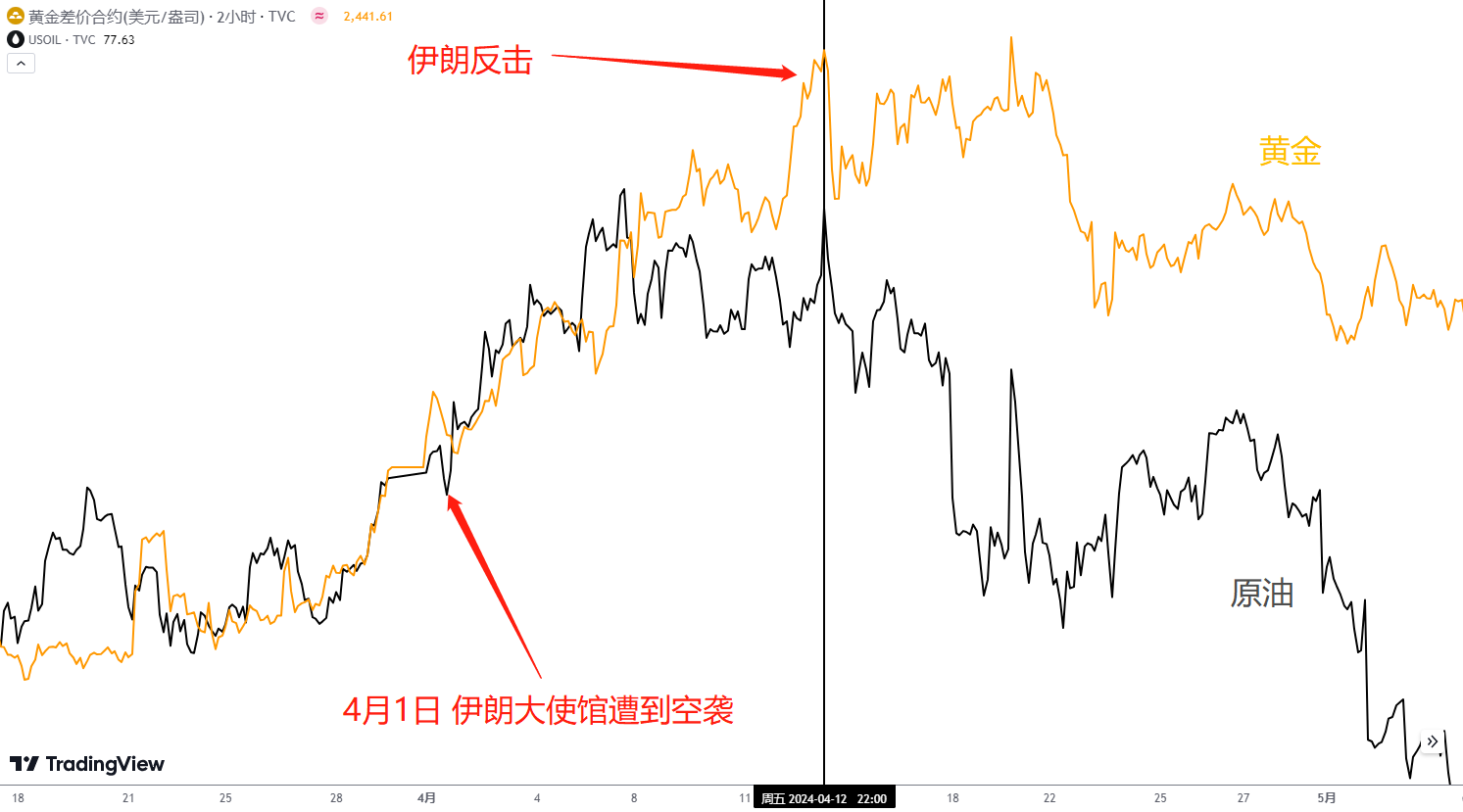 XAUUSD vs USWTI 两小时图