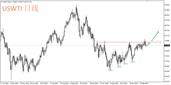 今年到目前为止的上涨幅度,已把去年的跌幅补回来,若后续美国经济可以维持软着陆甚至不着陆、以及中国两会对于金融市场托底态度更加明确的话,原油或许还有进一步走升的空间。