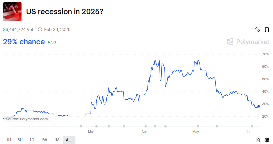 由于此前美中贸易紧张局势有所缓和,加上市场目前普遍认为川普的关税政策更像是为了创造谈判空间的手段,对于真实经济的影响应不如原先预期的那么严重,可发现当前市场对于美国经济在2025年的衰退概率从65%一路下滑到29%,因此美国经济可能安然度过川普引发的下风期,这对于提升未来原油潜在需求有所助益。