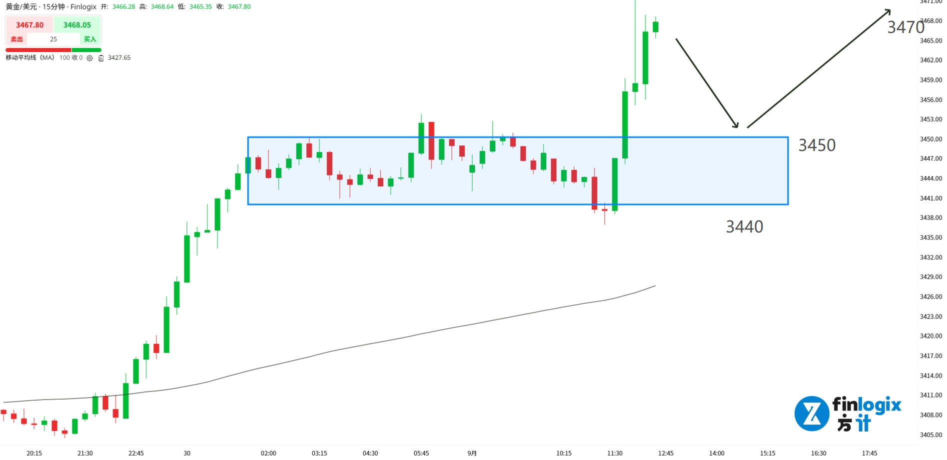 日内与短线交易策略:(趋势跟随)回踩3450后看涨