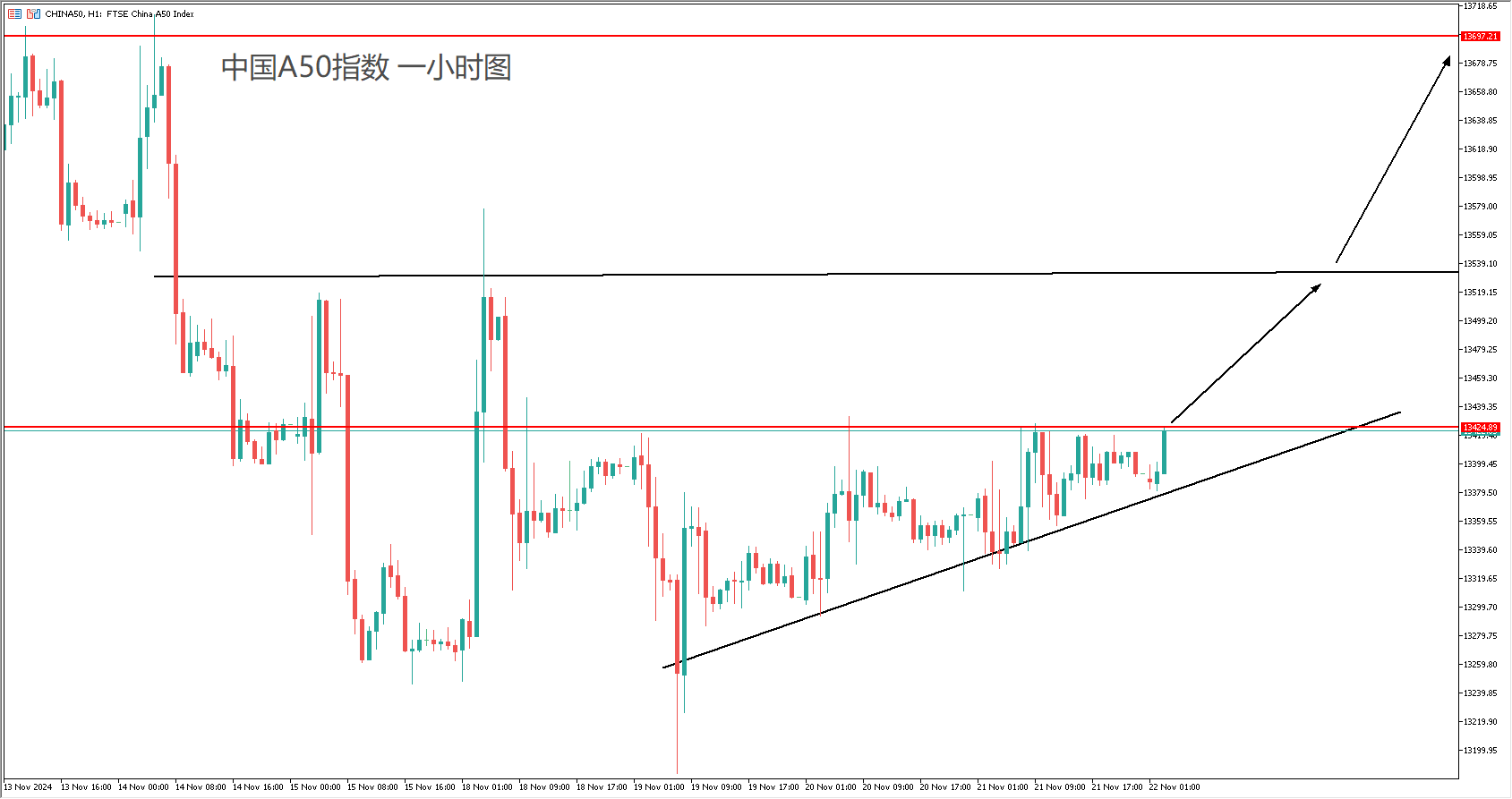交易策略:(趋势跟随)开盘突破13420后跟涨