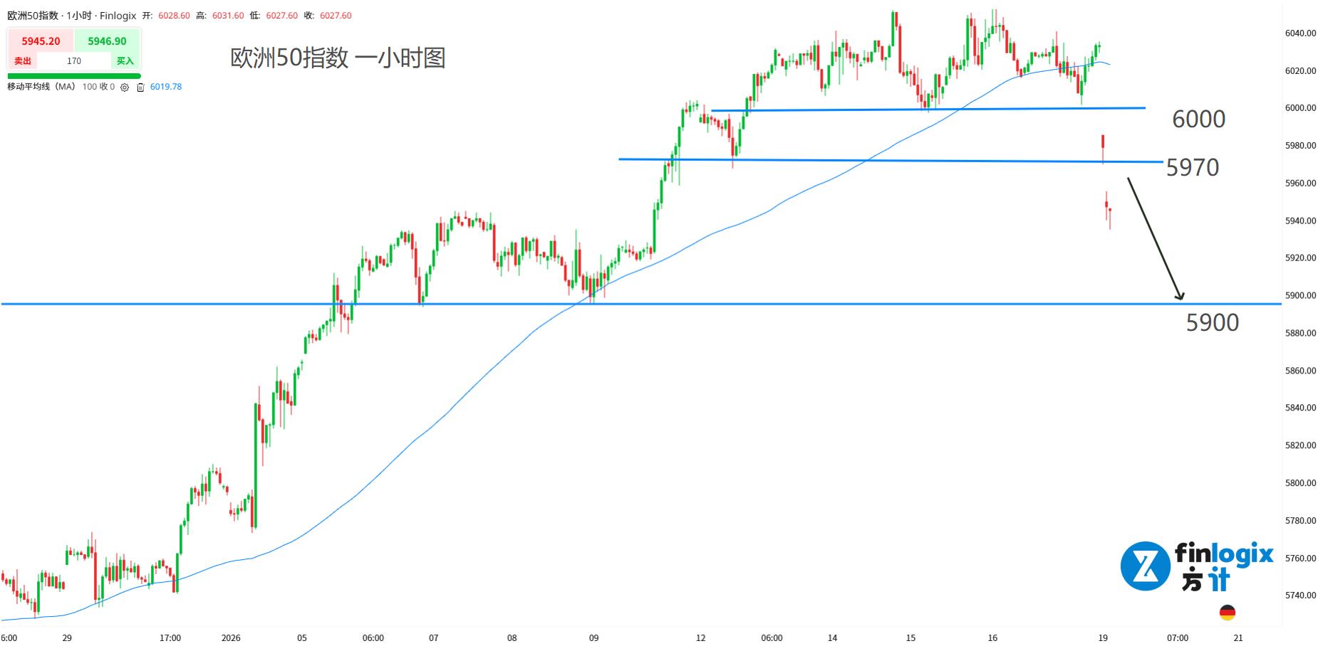 上周六,特朗普宣布对欧洲八国加征关税,直到“买下”格陵兰岛。今早开盘,全球股市暴跌,欧美指数跌势惨烈。黄金白银飙升再创新高。美元跟跌,瑞郎强劲上涨。