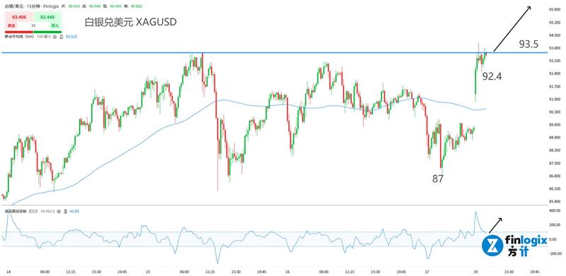 日内交易策略:(趋势跟随)突破93.5跟随看涨,上不封顶