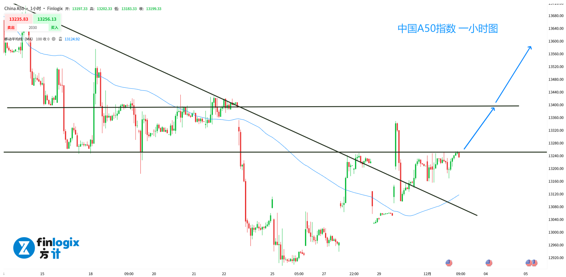 交易策略:(趋势跟随)突破13250或13400后跟涨