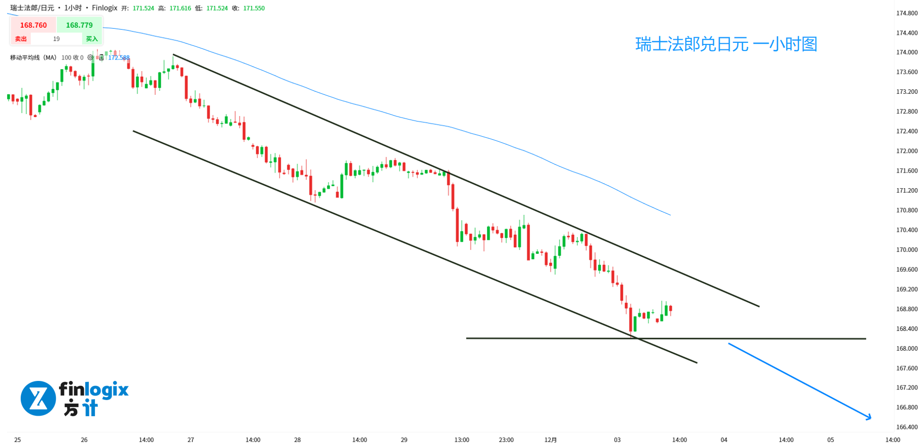 技术面:和欧日一样,强空头加下行通道。考虑到瑞士通胀具有不确定性,日内交易策略倾向于突破跟空。关注前低点168.2的突破动能。