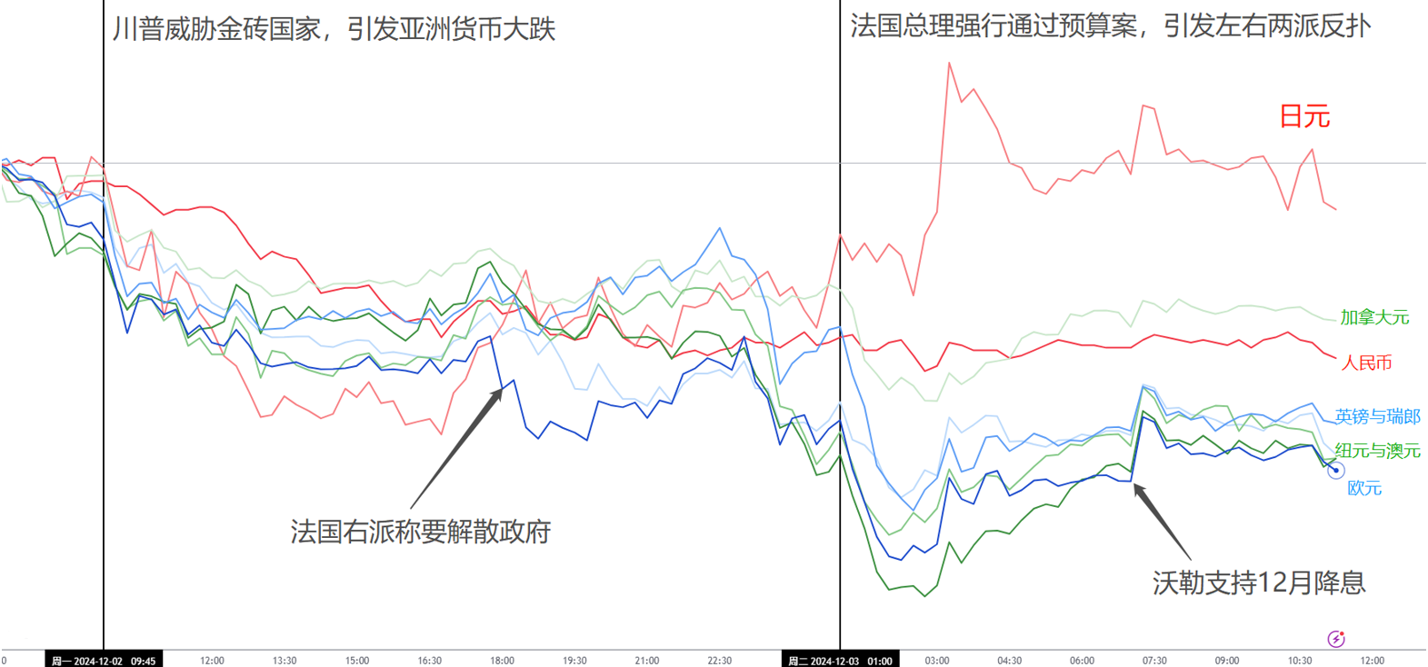 【每日分析】法国政府即将垮台,欧元与澳元暴跌!日元依旧是表现最佳的避险货币!