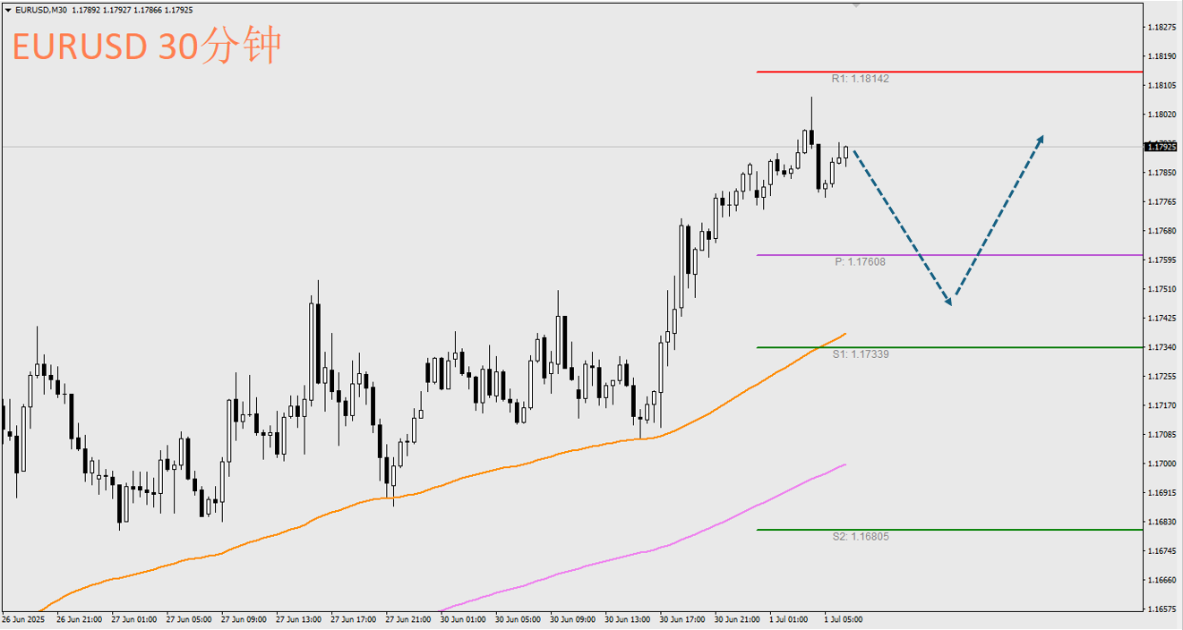 而近期市场开始把焦点转往关注在美国参议院正在审议的全面稅收和支出法案上,大家关注的点在于7月4日前将法案送达川普办公桌的目标是否可能实现。而最近的发展则是美国参议院以51对49的票数通过一项程序性动议,这也使得未来几天法案通过的可能性增加。不论是否在7月4日前通过与否,目前对于股市的影响其实并不大,股市仍应考虑做多,另一个考量的点在于若是通过的话,未来美国债务预计在10年内增加3.3兆,这在某种程度上加速市场去美元化的需求,美元跌势或有向下挑战94的机会,非美货币则持续偏多操作。