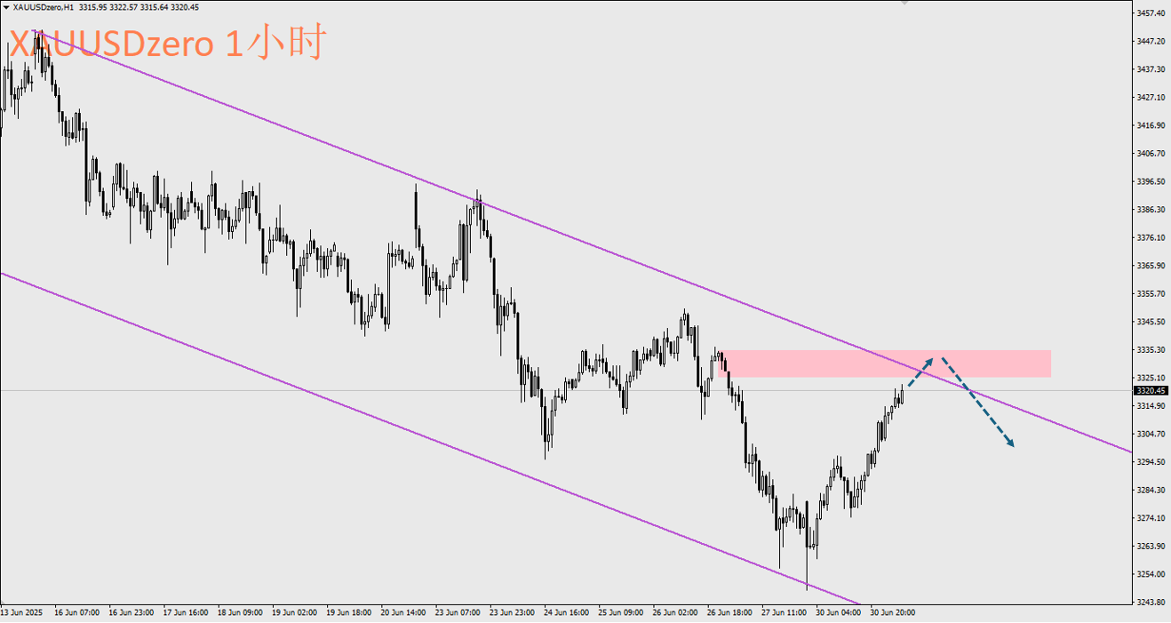 技术面:昨日金价恰恰在6月16日以来所形成的下行通道下缘有所反弹,目前即将反弹至上缘位置,若接下来能在3325~3335区域止涨,有考虑做空的机会