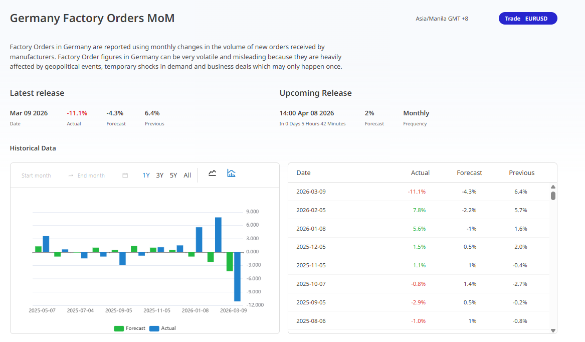 German Factory Orders MoM (Month-over-Month) A strong beat this week would be a fantastic fundamental catalyst for the whole economy.