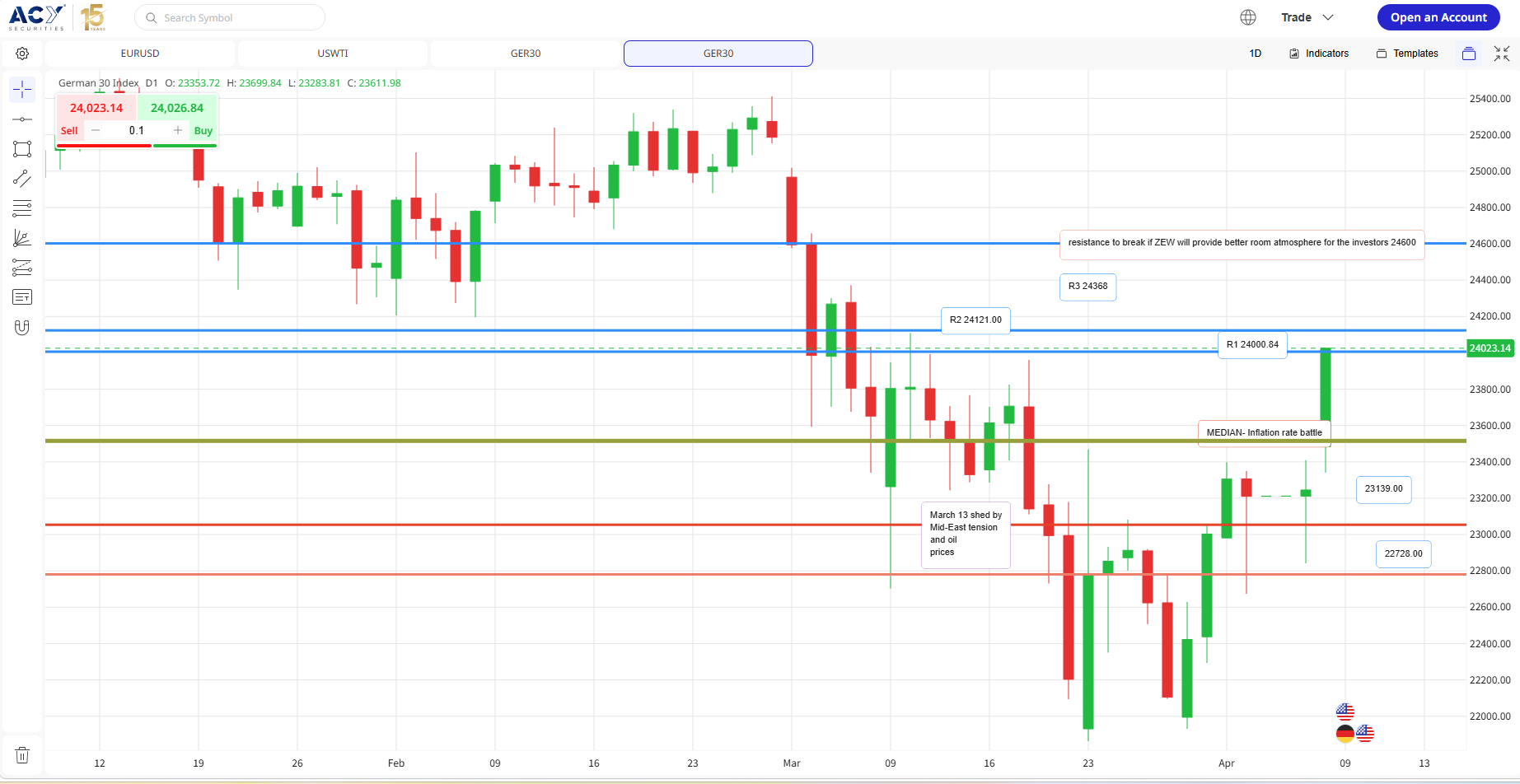 DAX faces a fundamental dilemma, caught between the stifling effects of energy-driven inflation and the stabilizing force of government infrastructure spending. Market participants should expect continued consolidation until a clear breakout occurs either a decisive move above 24000.84 to validate a bullish trend or a breach of the 22,728 floor that highlights persistent industrial vulnerabilities.
