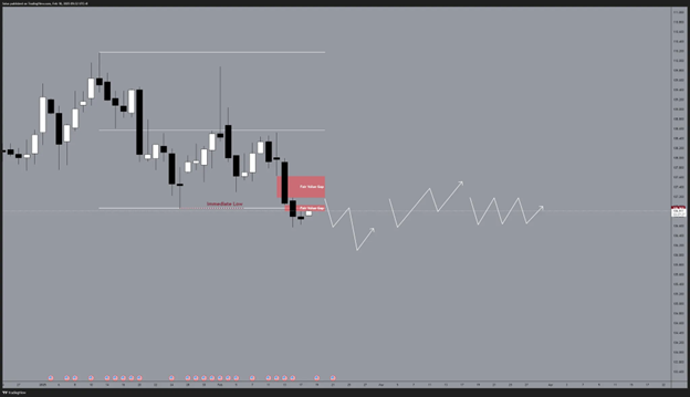 The recent low presents a potential liquidity pool, which institutions might exploit to trigger an upside reversal. Additionally, high CPI and PPI numbers could pressure the Fed to reconsider rate hikes, supporting a bullish move for the Dollar.