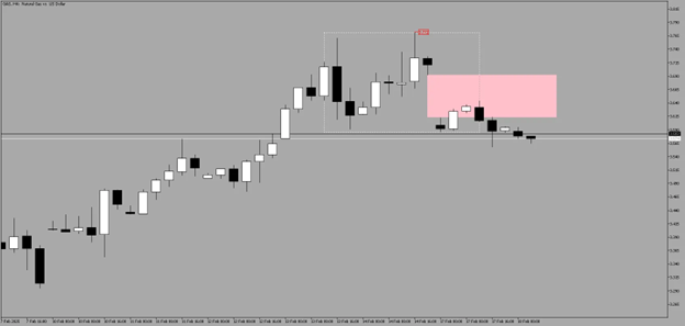 GAS reacted at the FVG and broke below 3.586, signaling continued downside pressure.