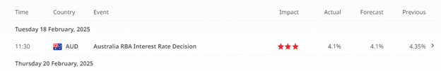 • AUDUSD: Testing critical resistance with the potential for volatility around the upcoming RBA Rate Cut decision. A breakout could confirm bullish momentum, while rejection may resume downside risks.