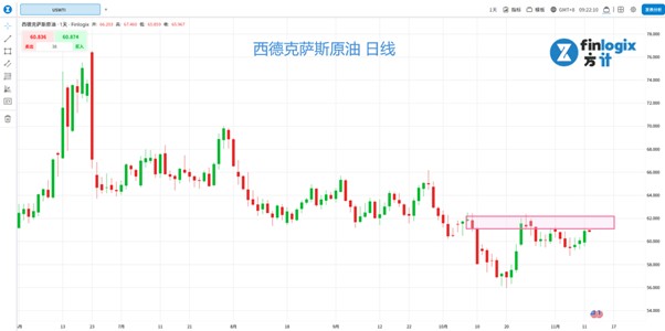 油价受到双重利好因素的提振。首先,美国对俄罗斯石油实施的新制裁持续影响市场,消息指出俄罗斯卢克石油公司已因制裁在伊拉克油田宣布不可抗力无法履行合同,潜在供应风险升起。其次,市场对美国政府停摆有望结束的乐观情绪,也提高了对原油需求的预期。