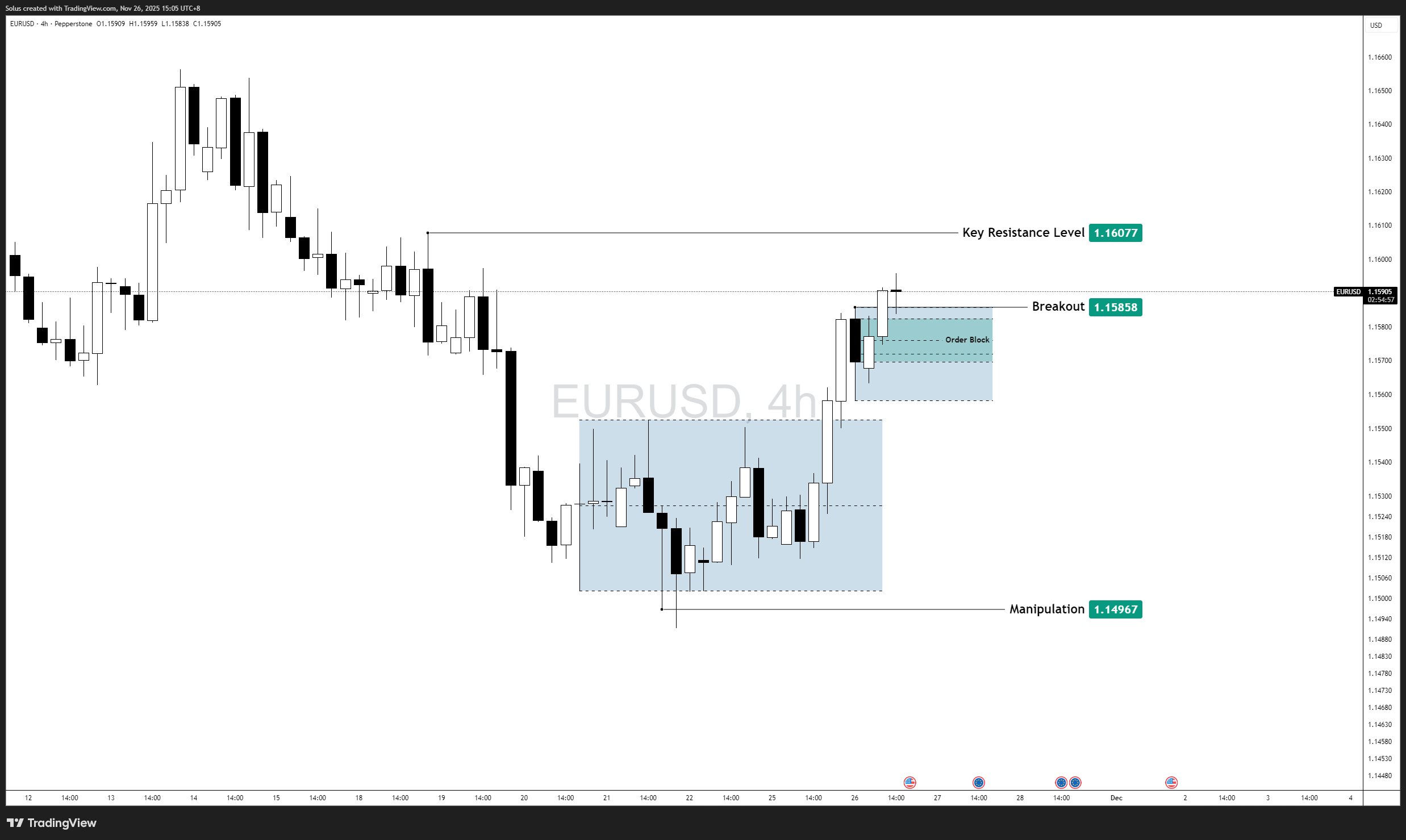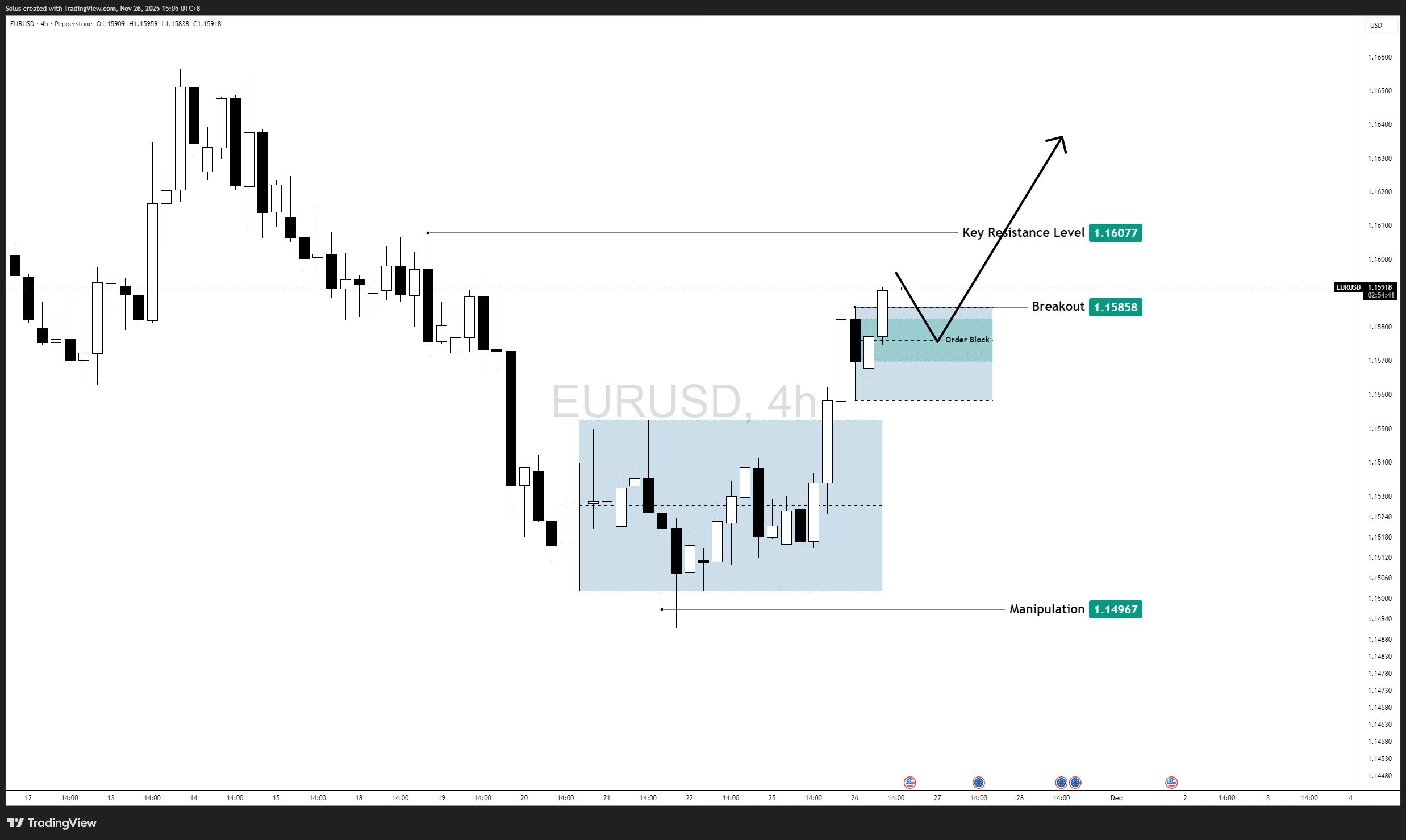 Price retests the 1.1560–1.1580 order block