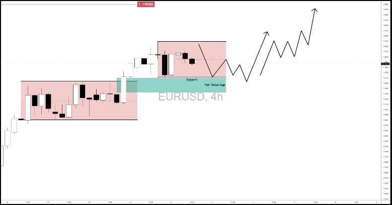 EUR/USD remains in bullish structure on the 4H timeframe and is currently forming a consolidation range just above the Fair Value Gap (FVG) and a prior support zone. Euro upside is still intact with: