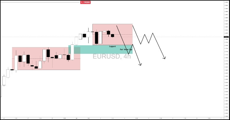 • Potential retracement to the FVG + Support Level at 1.17327-1.17607