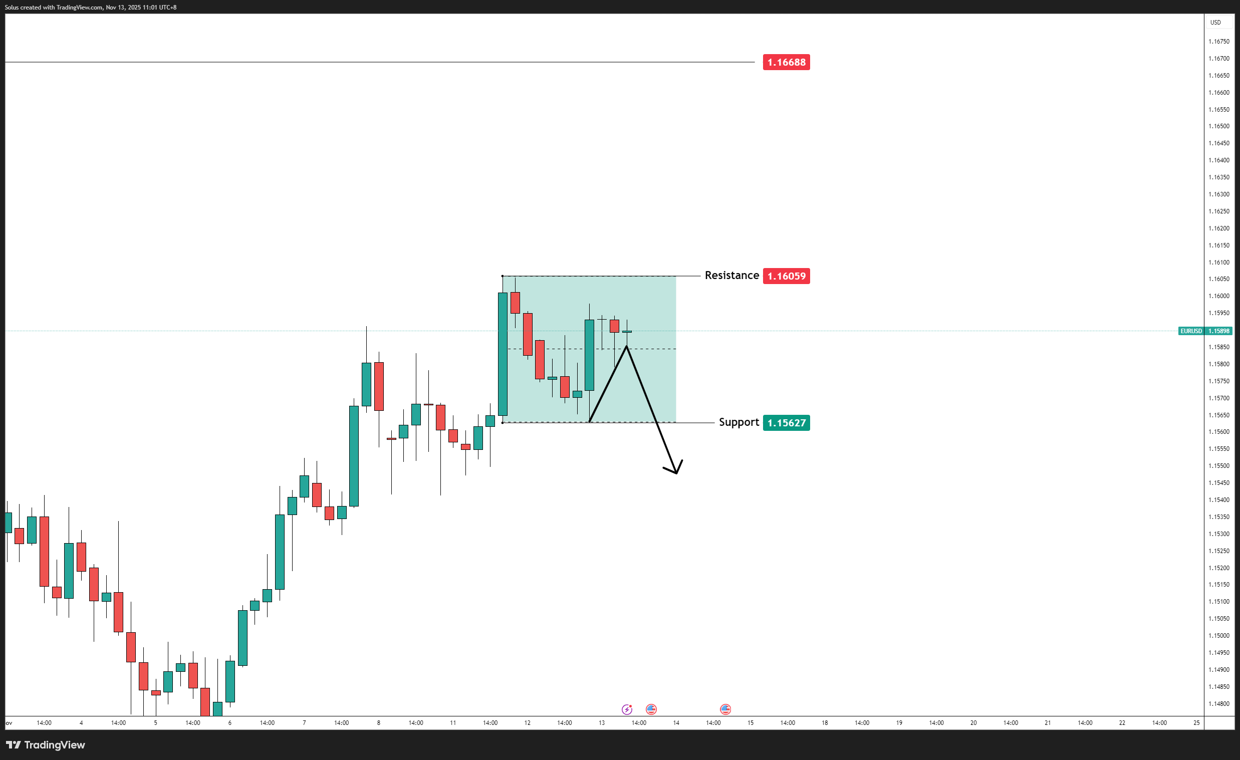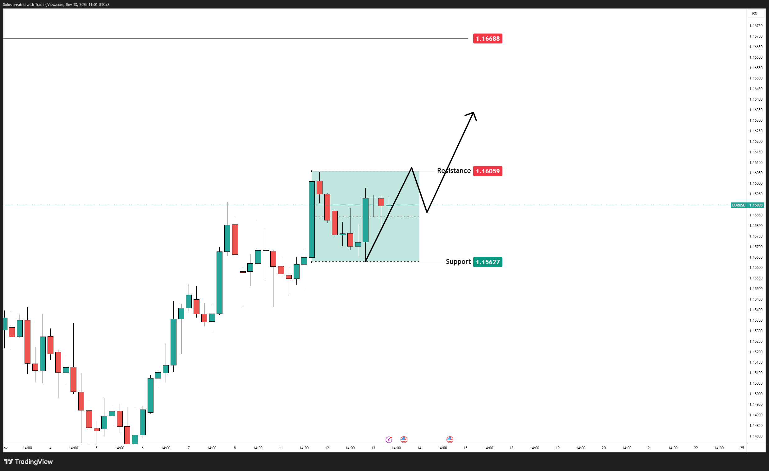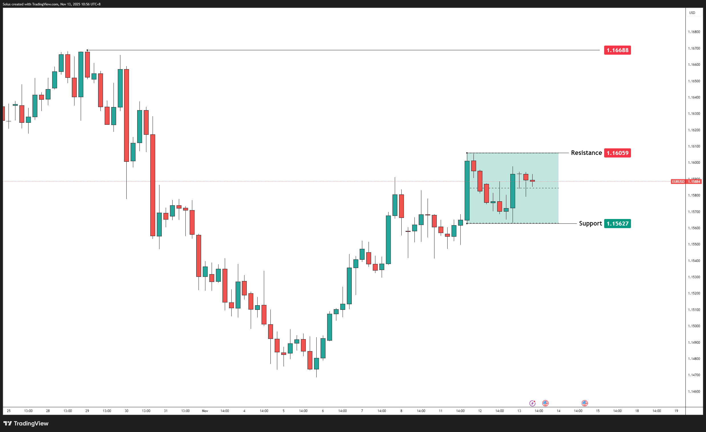 • A breakout above 1.16059 may target 1.16688, while a breakdown below 1.15627 exposes deeper pullbacks.