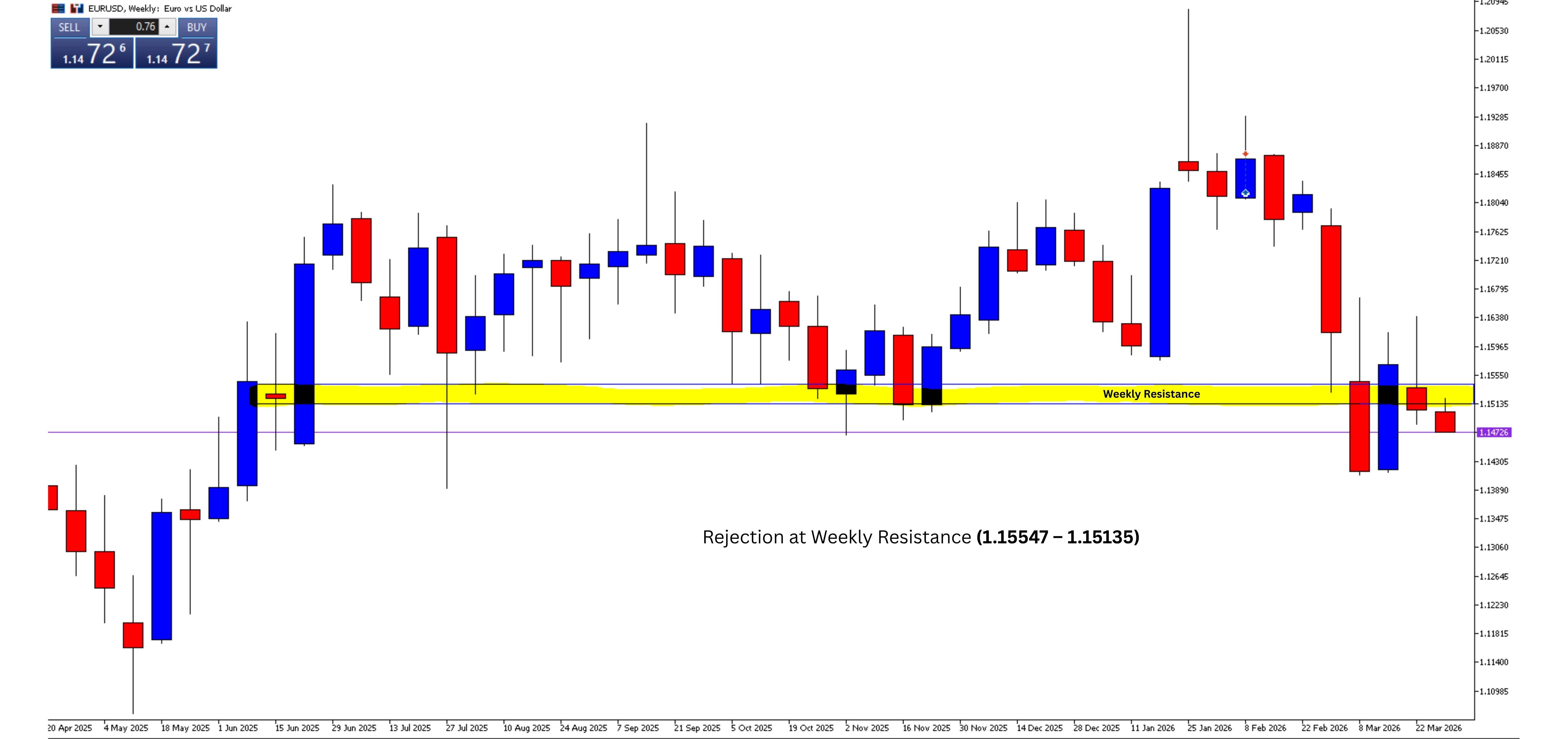 Weekly Price Action Analysis. Plotting Weekly Resistance Zone (1.15547 – 1.15135)