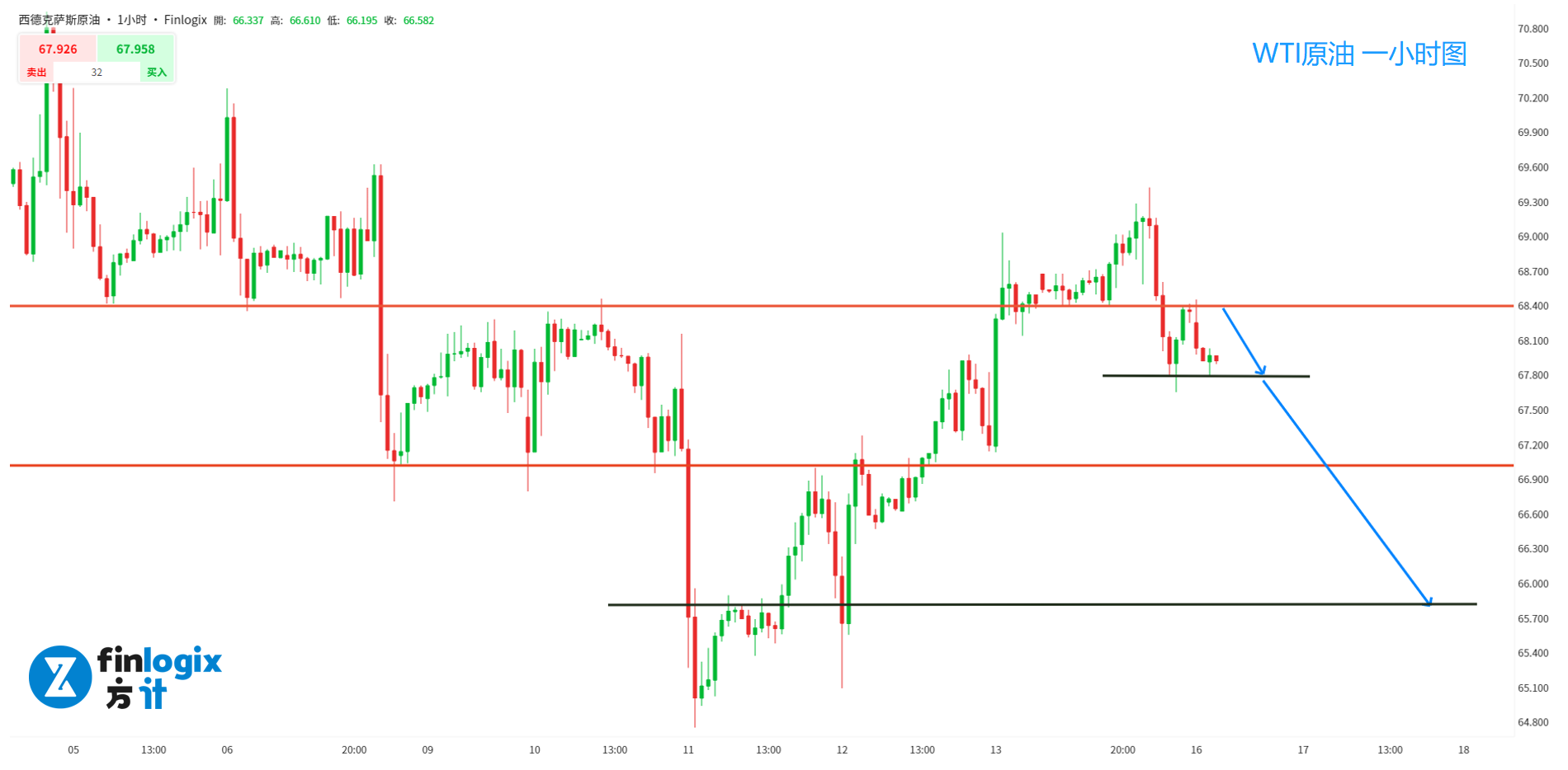 支撑参考:67.7(突破);67(突破&止盈);66