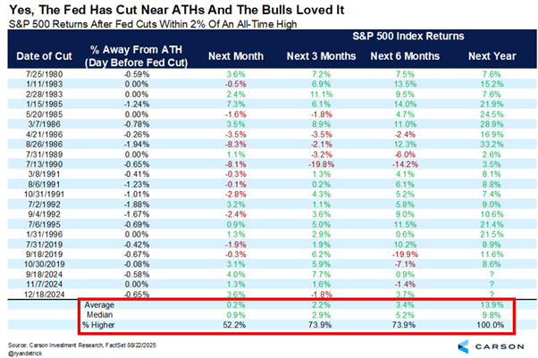 值得注意的是,这并不代表美股即将进入修正,相反,降息正为美股中长期行情注入支撑力。历史数据显示,1980~2024年间,每当标普500指数距离历史高点不足2%时启动降息,1年后的上涨概率是惊人的100%。这意味着当前的历史高点 6600点,一年后或许已成为新的波段低点。操作上,美股短线可考虑拉回布局,逢低寻找买点。