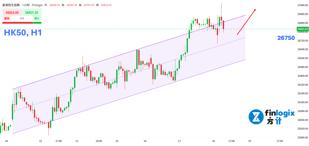 技术面:H股刚突破上行通道,动能非常强劲。不只百度、阿里巴巴发展自研芯片带来利多,昨天还公布的「科技中心」计划,有望替市场注入更多动能。日内交易以突破26950或回踩26750有撑,考虑偏多。