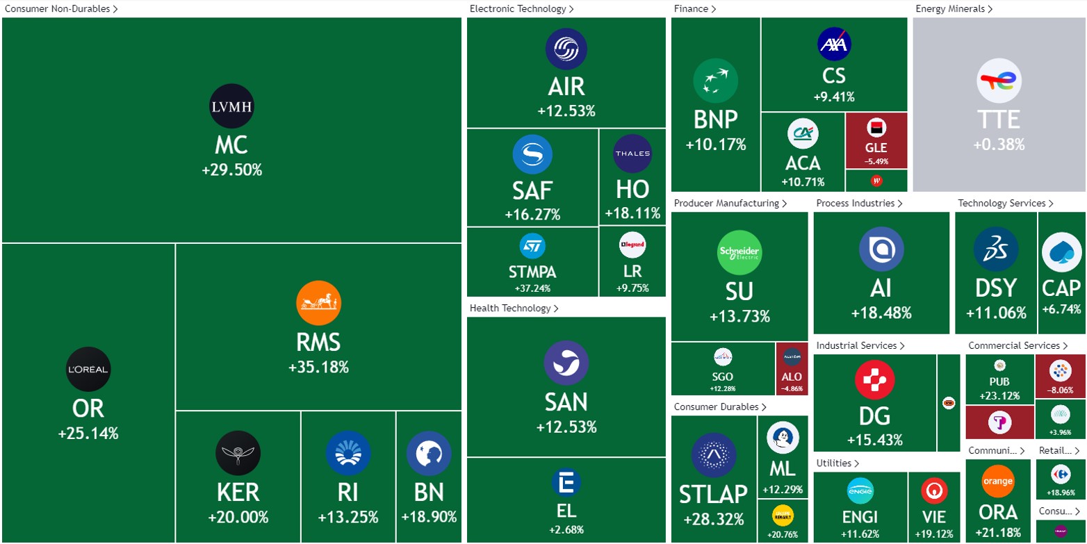 法国CAC指数热力图(YTD)