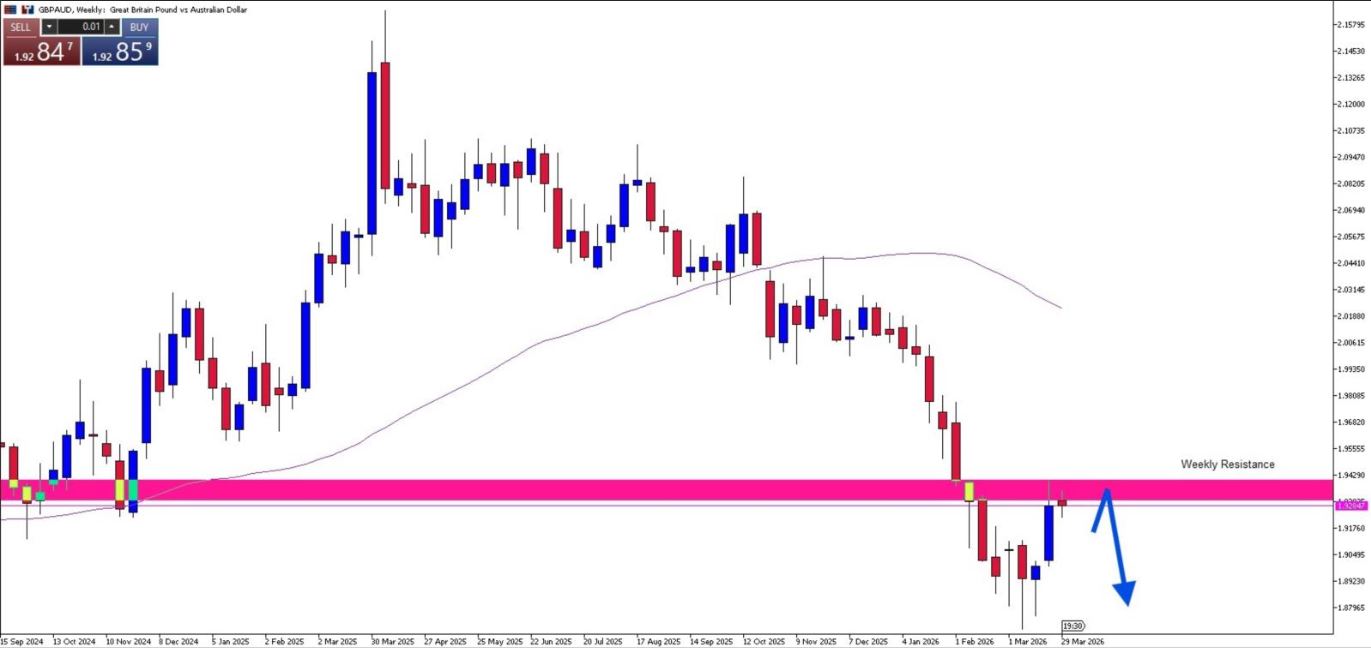 GBP/AUD Weekly Chart Price Action Analysis. Potential Rejection on Weekly Resistance