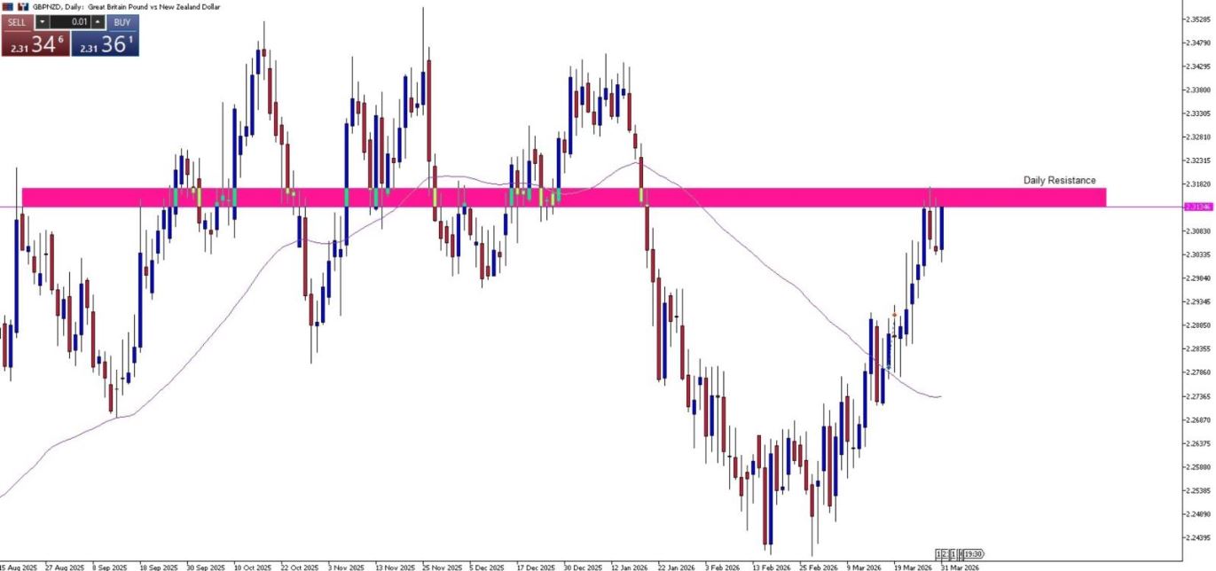 GBP/NZDC Daily Price Action Analysis. Potential Rejection on Daily Resistance Zone