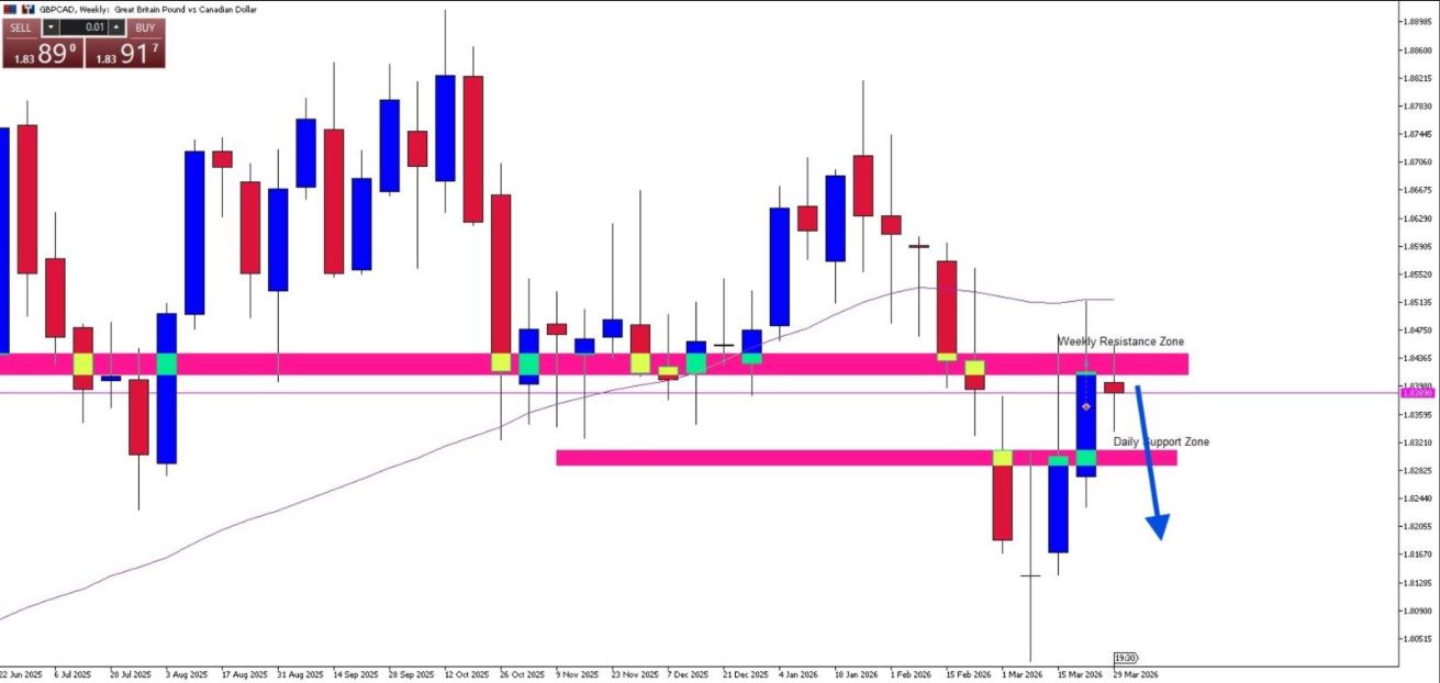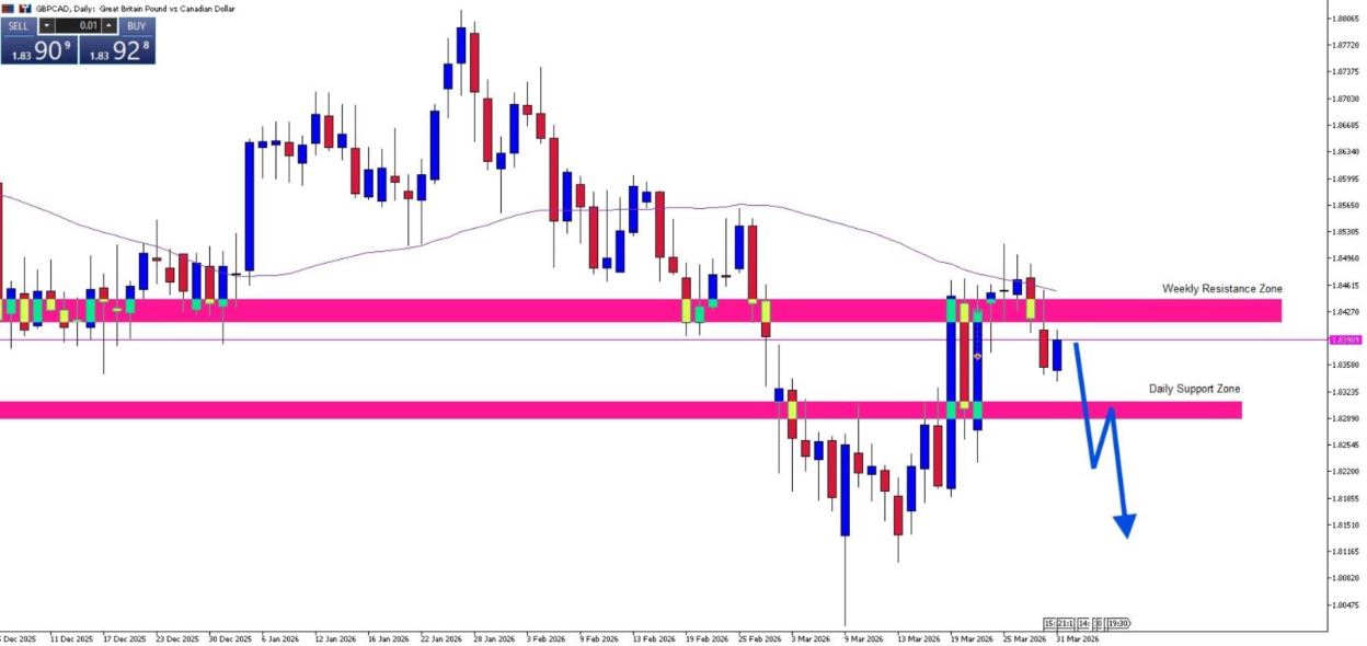 If EUR/GBP rises, it confirms GBP weakness, supporting bearish GBP/CAD bias.
