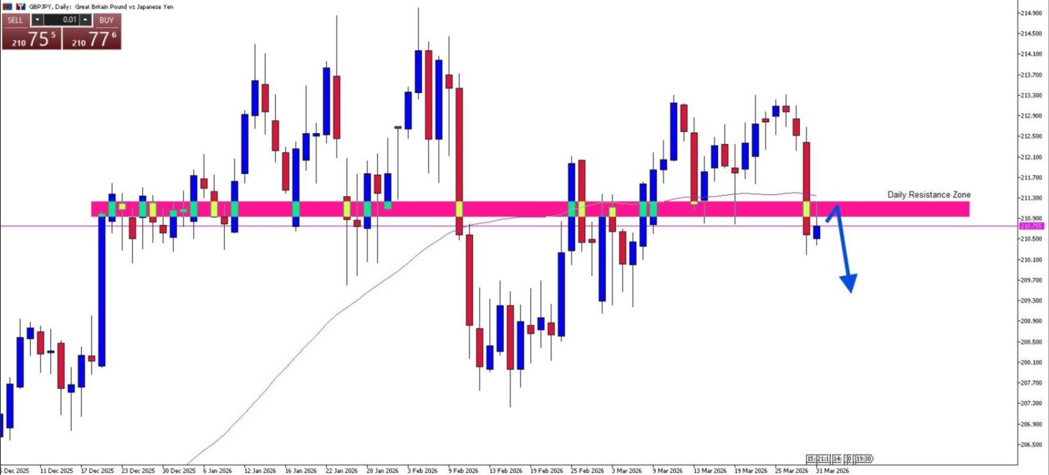 GBP/JPY Daily Chart Price Action Analysis. Potential Rejection on Daily Resistance Zone