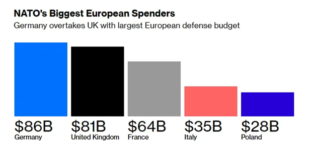 Seconded Germany, UK is also bumping up its defense budget in preparation for the exit of US from NATO.