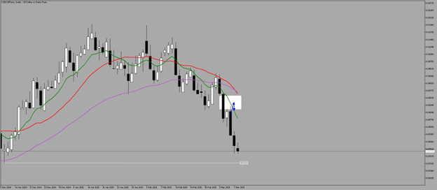 After reacting at the Daily Fair Value Gap, and price resists at the 10-day moving average, Swissie continues to invalidate USD to the downside.