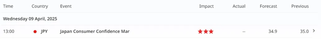 Despite safe-haven inflows into the Japanese yen amid global market turmoil, consumer confidence is expected to decline. This reflects lingering concerns over inflation pressures seen in recent weeks, though those risks have since eased as the Bank of Japan maintains a dovish policy stance.