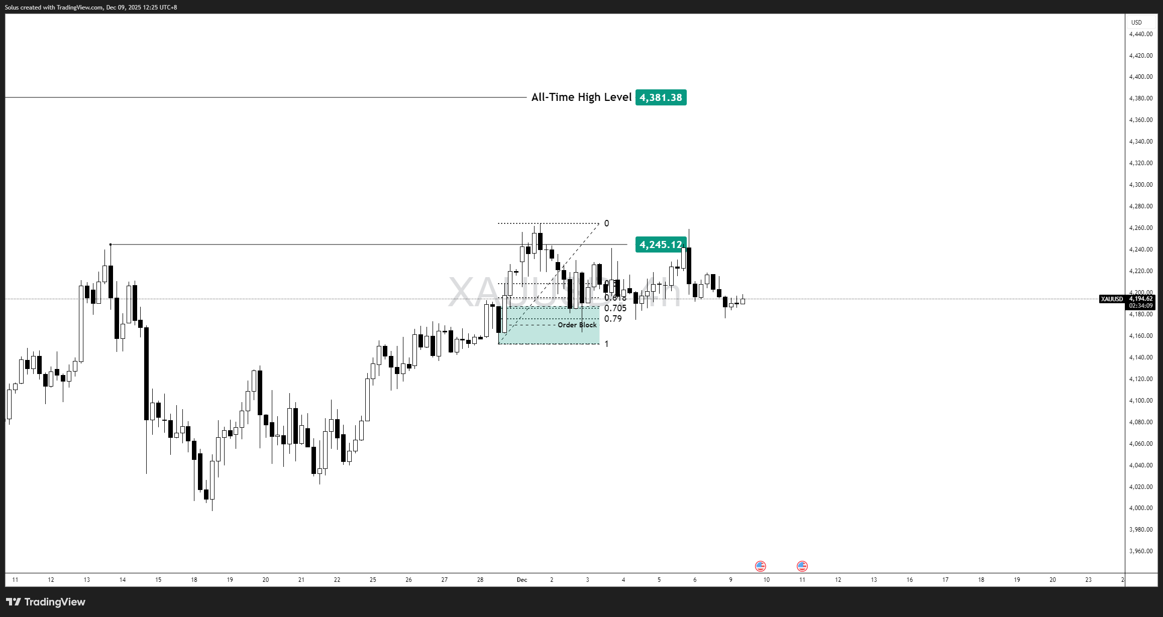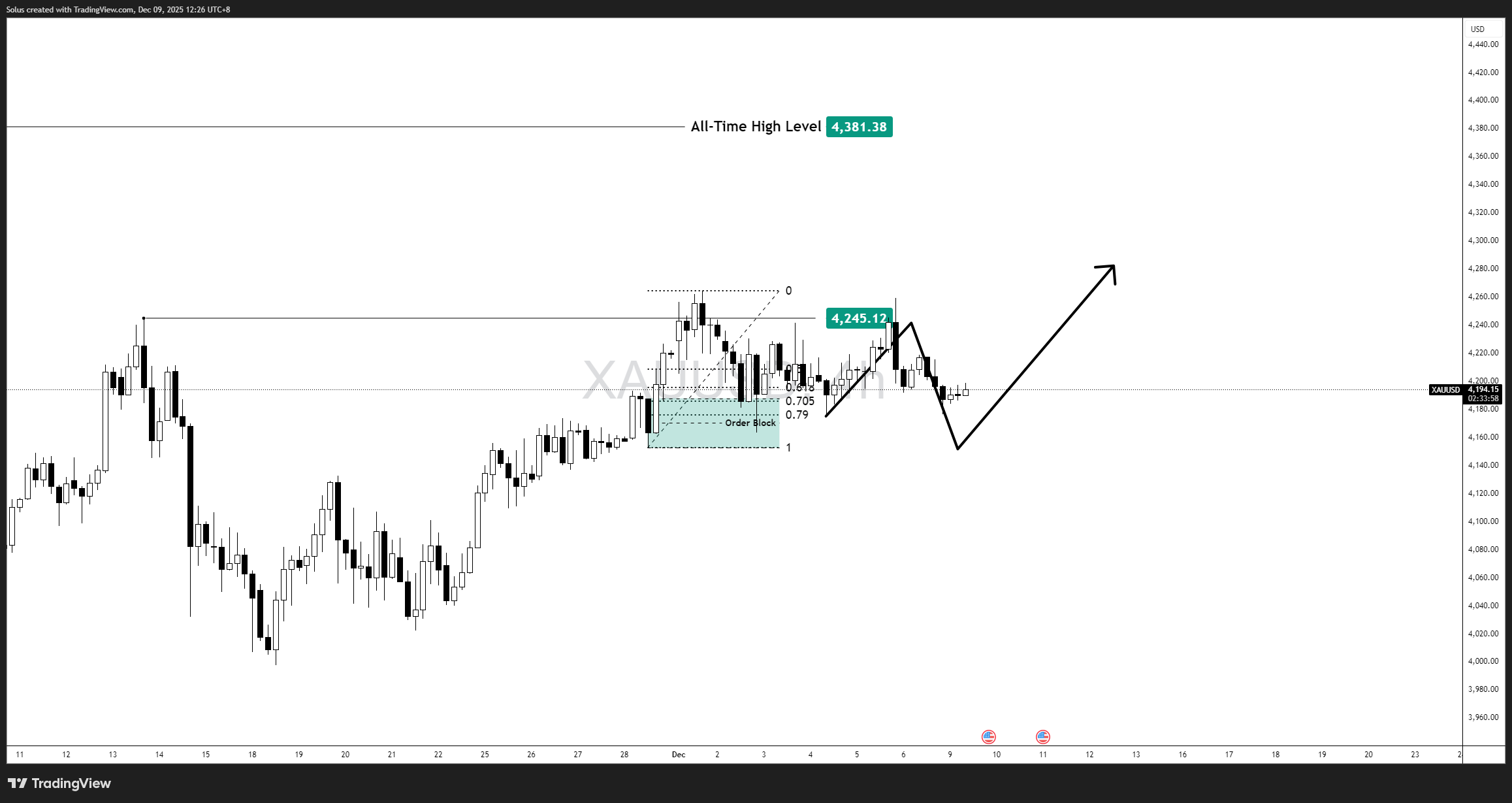 Gold remains fundamentally and technically supported as December progresses. With the Fed leaning toward a rate cut, the US Dollar trapped in range, and geopolitical tension sustaining safe-haven flows, the path of least resistance for gold still leans higher.