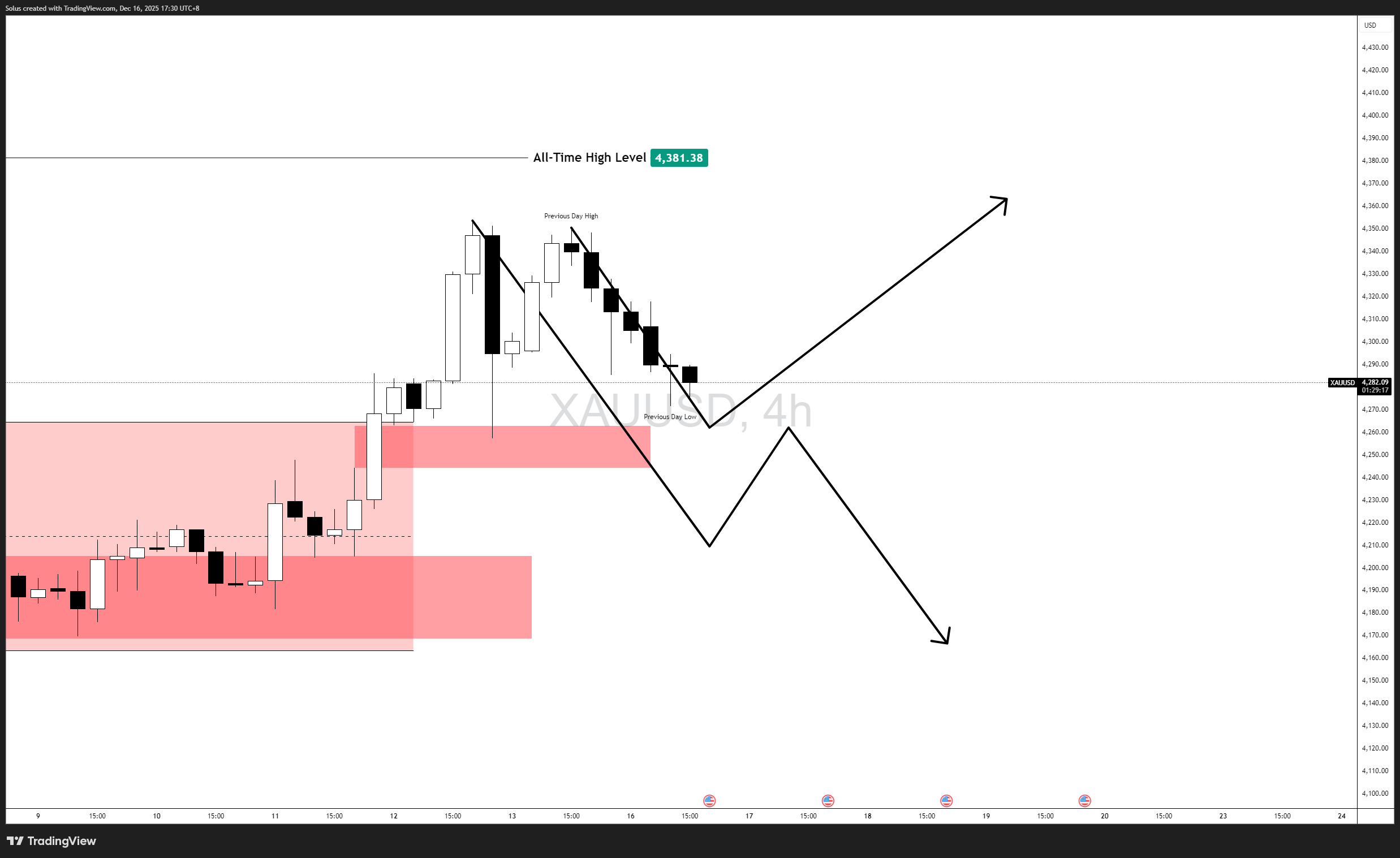 Technical forecast: As long as price holds above key higher-timeframe demand zones, gold favors continuation toward higher highs, with volatility expected around pullbacks.