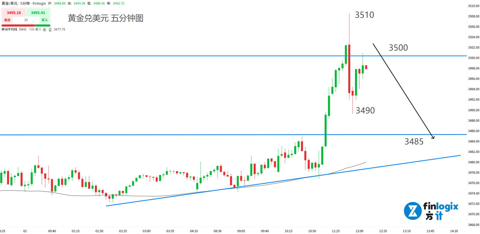 阻力参考:3500;3510(严格止损)