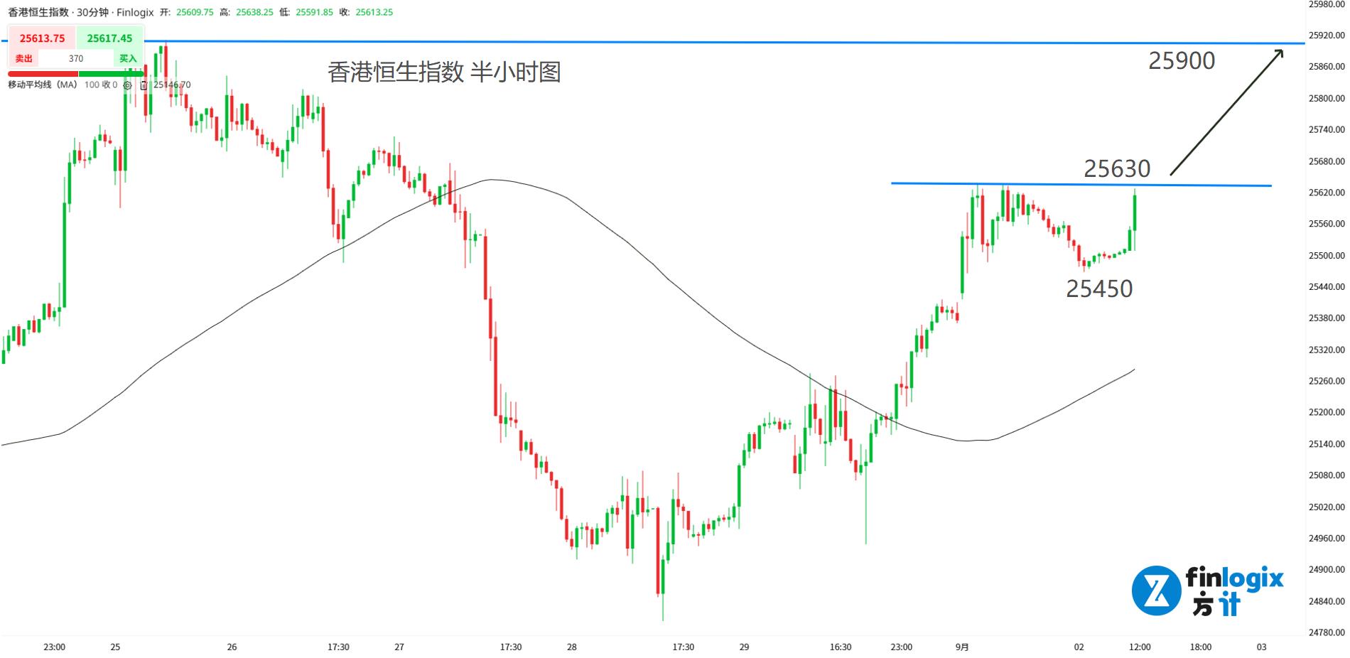短线交易策略:(趋势跟随)突破25630跟随看涨