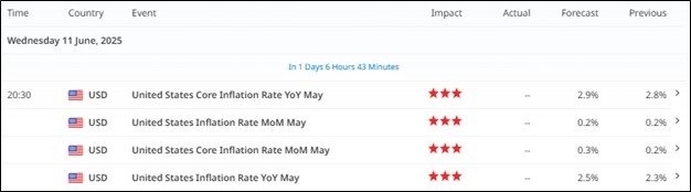 • Headline CPI YoY (May) expected at 2.5%, up from 2.3%