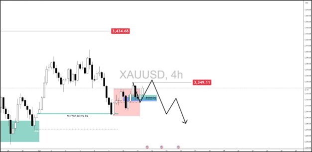• Gold breaks below New Week Opening Gap, targets $3,295.79–$3,298.03