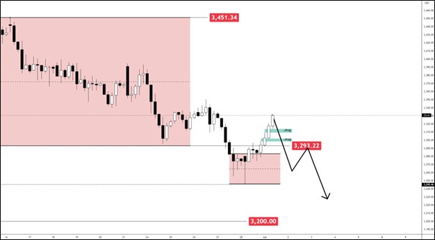• Price breaks below $3,300-$3,270 level